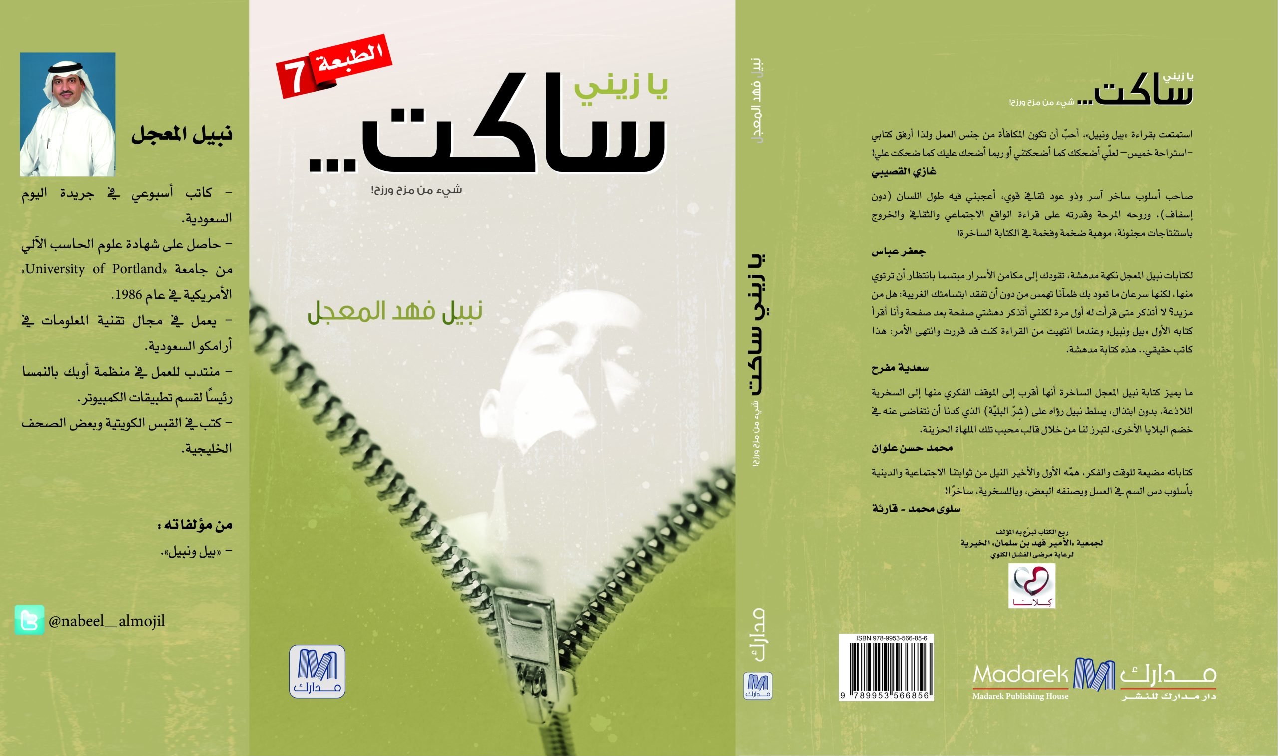 يبدأ الكتاب بحكاية المؤلف مع الكتابة والظروف التي ساعدته في أن يدخل مجال الكتابة، يسترسل بعدها في طرق مواضيع عدة تهم حياة المواطن البسيط والمسؤول على حد سواء، لم يترك شاردة وواردة إلا وتطرق إليها بدءا من الصخب المصاحب مع قدوم يوم الحب مرورا بالإرهاب الفكري والمادي، ولا ينسى التطرق إلى العنصرية والنظرة القاصرة للوظائف الدنيا والطائفية بأسلوب ساخر، في ثنايا الكتاب يمر الكاتب ببعض تجاربه العملية عندما كان مراهقا، وأيضا عندما كان طالبا في أميركا بسرد تجربتين تعلم منهما مهارات عدة واكتسب منهما حب العمل والتعايش مع الآخرين بأسلوب قصصي ممتع. الجيل الجديد -والذي لم يعد جديدا حيث اختلط الحابل بالنابل ولم يعد هناك جيلا جديدا ولا جيلا قديما- كان له نصيب من الفصول عن كيفية استخدامه للفيسبوك والتويتر وغيرها من تقنيات حديثة. لم ينسَ الكاتب وهو ابن بيئته التطرق إلى عدة مواضيع تشغل بال الكثير من الناس، منها الحسد وثقافة الاستهلاك، والفارق ما بين السجن المؤبد والزواج المؤبد، إضافة إلى الزواج الثلاثي والرباعي وغيره من مسميات… الربيع العربي بمساوئه وحسناته كان حاضرا بقوة من خلال عدة حكايات، منها على سبيل المثال ثورة الفشار مشبها الثورات باختلاف قوتها وتوجهاتها بماكينة طهي الفشار، وأيضا مقال البطاريات تدوم وتدوم من خلال التشبث بكراسي الحكم من قبل بعض الرؤساء العرب مظهرا سخرية حادة برمزية عالية الجودة وسهلة الفهم. كما أن الكتاب لا يخلو من مقالات جادة، ففي حكاية « في كانكون نكون أو لا نكون » يتطرق الكاتب إلى موضوع حيوي ألا وهو النفط، وأيضا في موضوع « ومن أحياها غير كلانا » يتطرق الكاتب إلى برنامج جمعية الأمير فهد بن سلمان لرعاية مرضى الفشل الكلوي من خلال شرح أهداف برنامجهم الرائع « كلانا » ويستعرض فيه معاناة عائلة الكاتب الشخصية في أثناء مرض والدته رحمها الله مع مرض الكبد الوبائي الذي يصيب الكثير من السعوديين. (less)